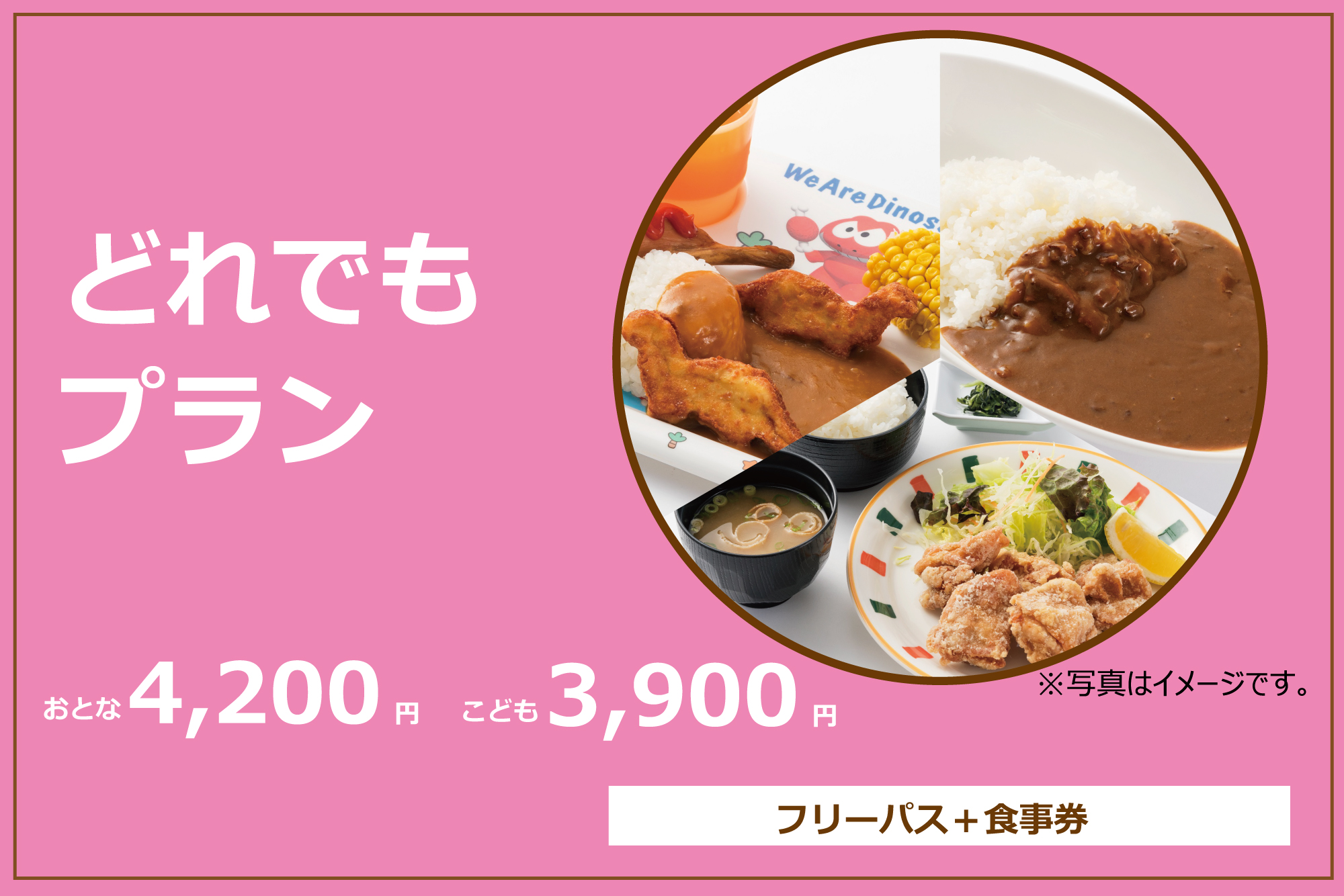 内容:フリーパス(入園料込)食事券(店舗内のメニューどれでも1品注文可)※食事券を使える店舗は利用当日ご案内いたします)