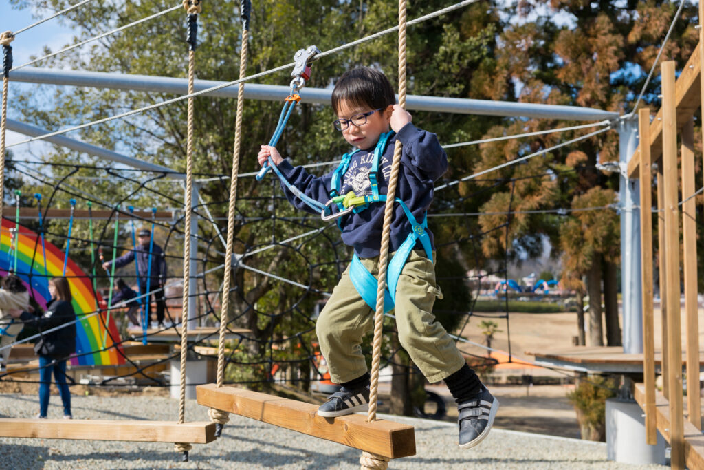 大人と同様にハーネスを装着し、高さ約1メートルのコースを進みます。難易度別に全3コースで構成され、年齢や体力に合わせてコースを選べます。身長140㎝未満のお子様がご利用可能です。