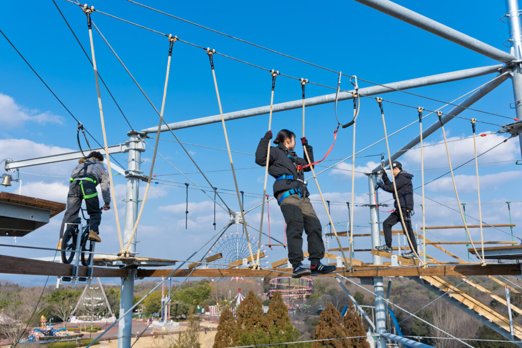 高さ約16メートル、3階層で構成されています。1階層でも地上からの高さは約5メートル以上あるため、スリリングかつ非日常の体験を味わうことができます。
