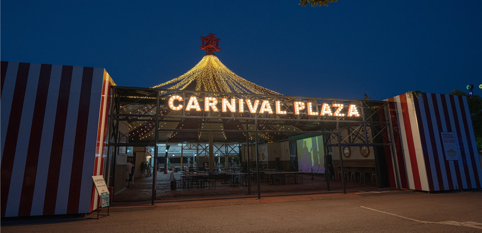 巨大スクリーンでライブ映像を上映し、Saucy DogのLIVE会場さながらの空間に。オフィシャルグッズの販売、オリジナルステッカープレゼントもこちらのテント内で実施します。